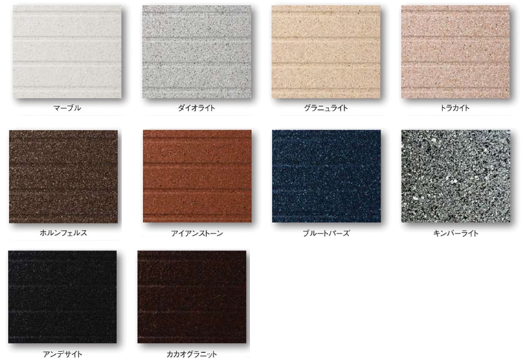 多彩なチップが配合され独特の立体感が特徴的な塗装です。 デザイン性に富んだ気品溢れる外観を演出します。 15年(期待耐用年数)経過後も光沢保持率80%以上することが実証されました。 石骨材や砂などを配合させた一般的なデザイン系塗料に比べて軽量なため建物への負担が少ないのも特徴です。